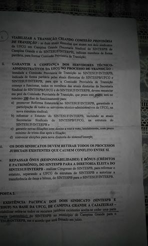 Veja proposta do Sintespb para transição dos servidores da UFCG para o Sintesuf da Universidade federal de Campina Grande ,